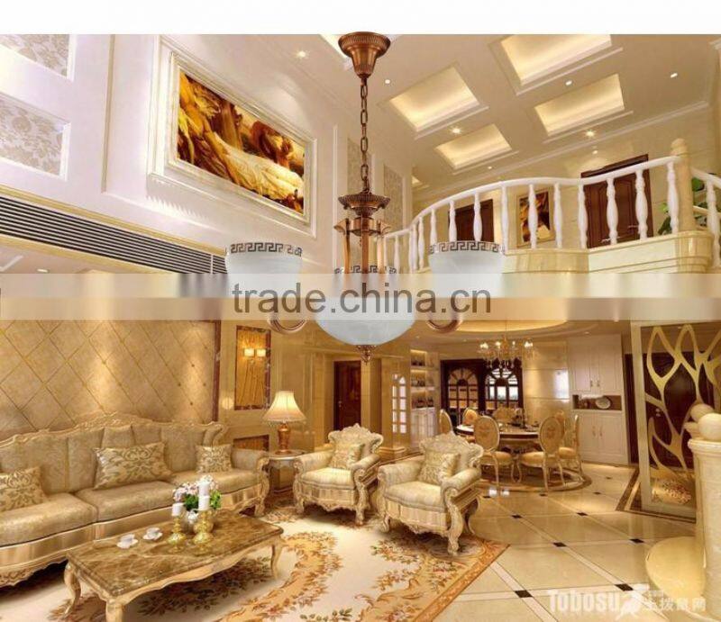 Marble Style Classical Full Copper Luxury Decorative Lighting Chandelier For High Ceiling 3 Heads 608-3H