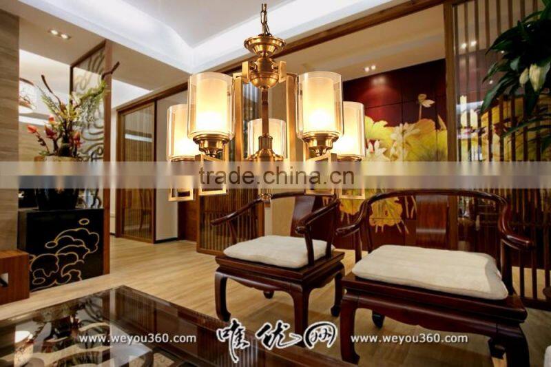 Chinese Style Classical Full Copper Luxury Decorative Light Hotel Chandelier For High Ceiling 5 Heads 522-5H
