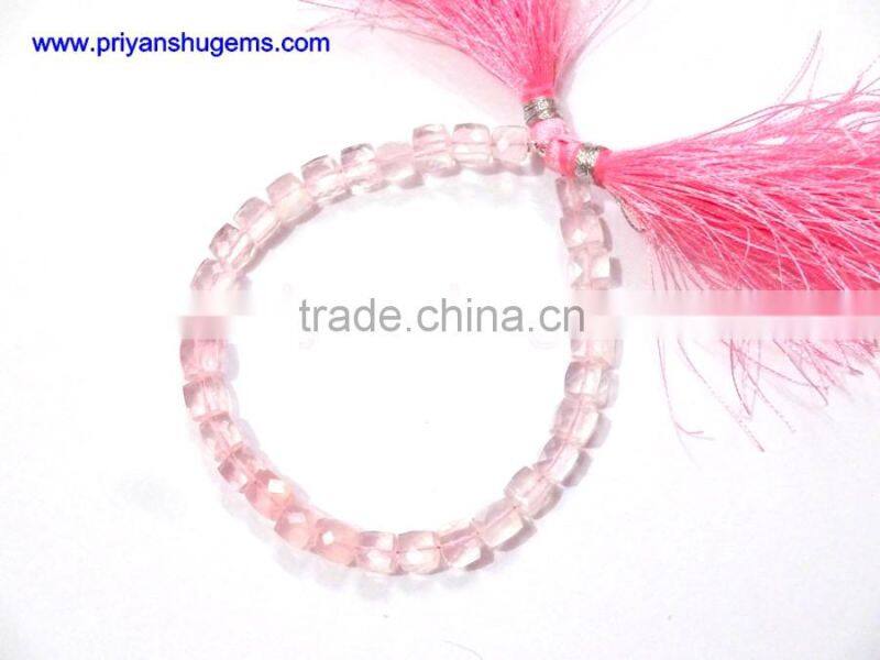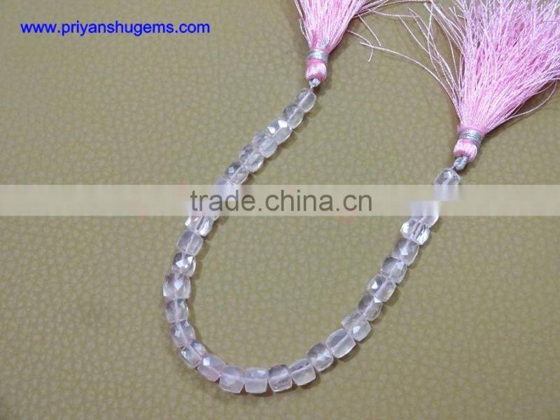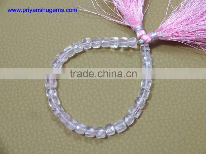 Home > Products > FACETED 3D CUBE BOX > Rose Quartz Hand Made 6-15 mm Faceted Box Shape, 7" Strand Length 100% Natural Gemstones