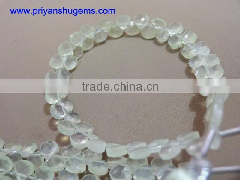 Prehnite Hand Made 4.75 mm Faceted Heart Shape, 6" Strand Length 100% Natural Gemstones