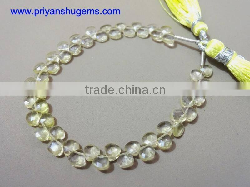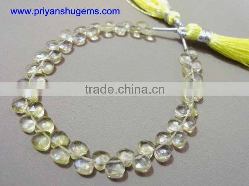 Lemon Quartz Hand Made 4.75 mm Faceted Heart Shape, 6" Strand Length 100% Natural Gemstones