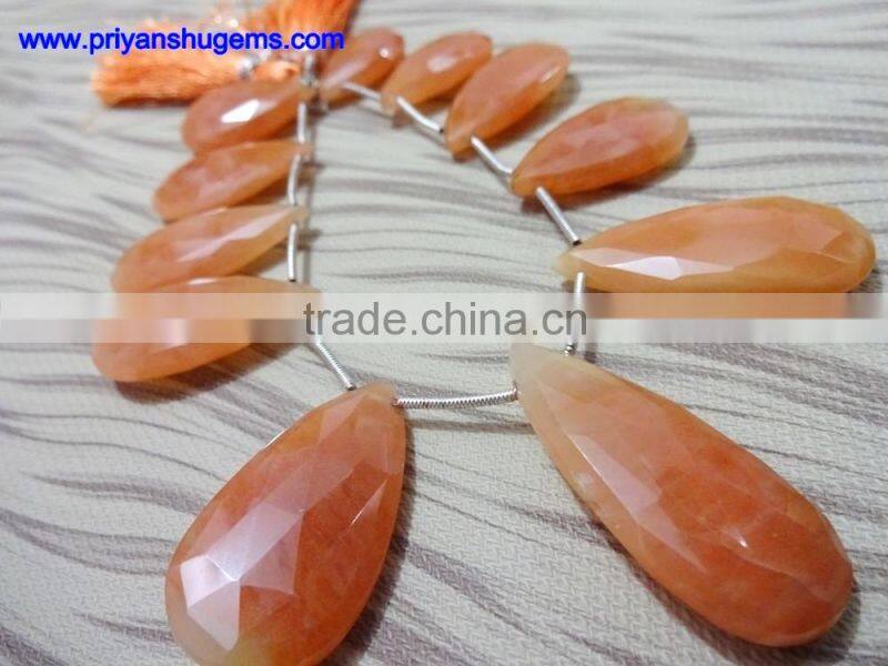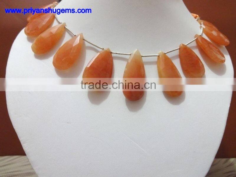 Orange Aventurine Faceted Long Pear Shape Gemstones