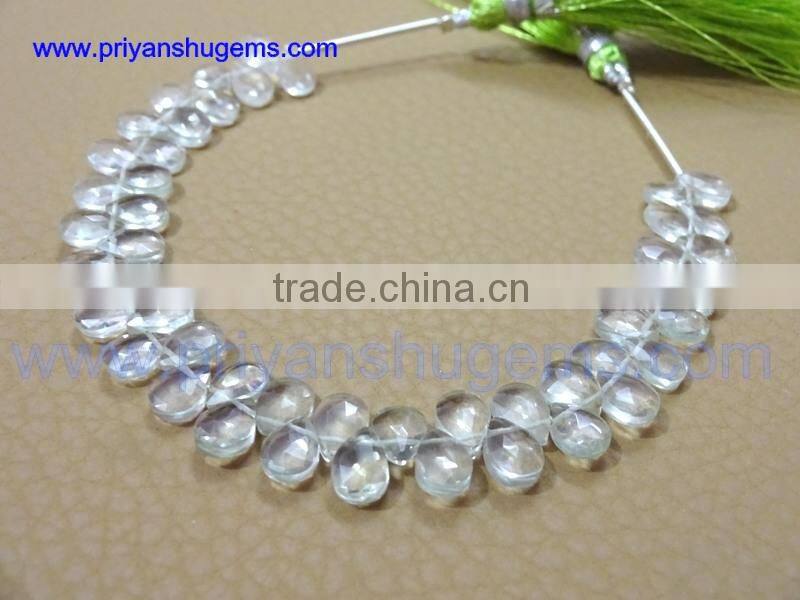 Home > Products > Faceted Pear shap beads > Green Amethyst 5*7 mm 40 ct Handmade Faceted Pear 6" Strand Length Natural Gemstones