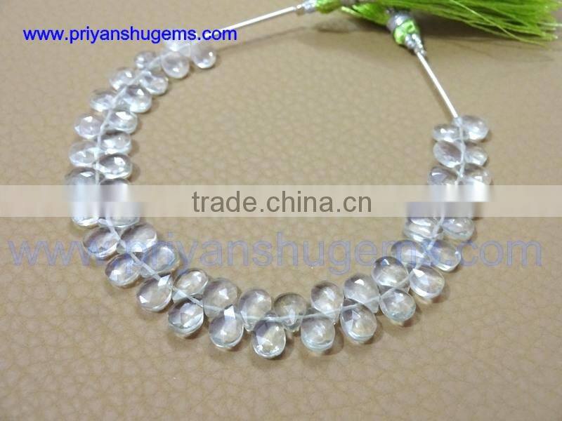 Moss Aqua 5*7 mm 47 ct Handmade Faceted Pear 6" Strand Length Natural Gemstones