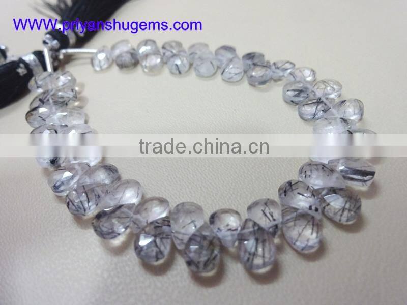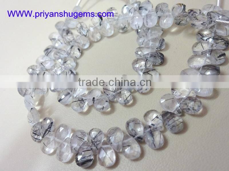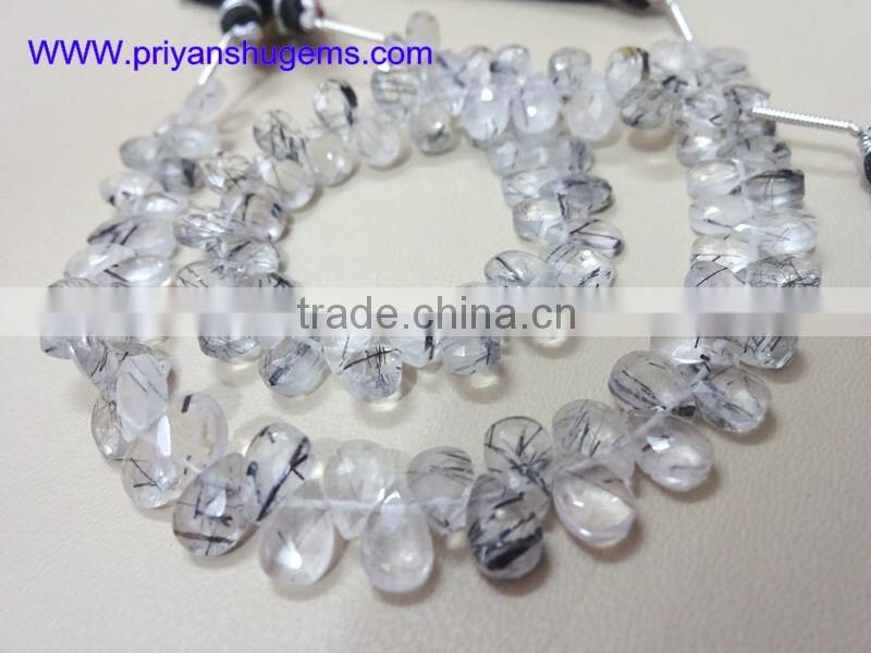 Home > Products > Faceted Pear shap beads > Tourmalated Quartz/Black Rutilated Quartz 5*7 mm 39 ct Handmade Faceted Pear 6" Strand Length Natural Gemstones