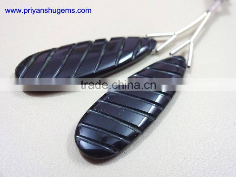 Home > Products > Fancy > Black Onyx 12*37 Long Pear With Carving Pair 100% Natural Gemstones AAA Quality Product Hand Made in India