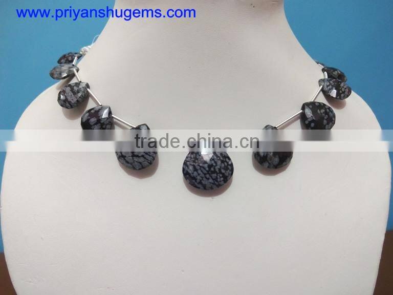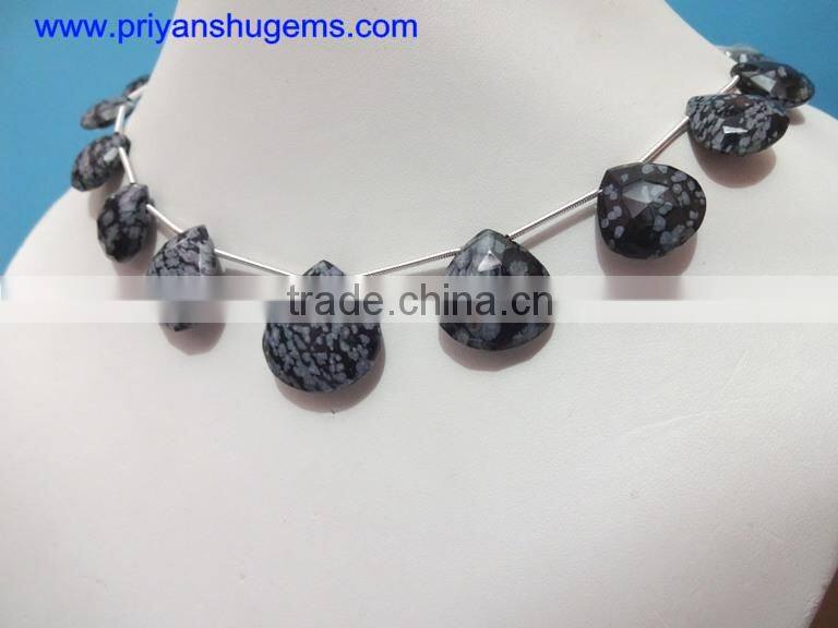 Snowflake Obsidian Hand Made 10-21 mm Faceted Heart Shape 6" Strand Length 100% Natural Gemstones