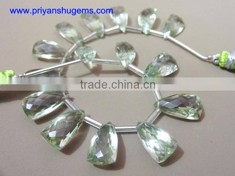 Green Amethyst Elongated Pyramid 8*15 mm 64 Cts Faceted Elongated Pyramid 6" Strand Length Natural Gemstones