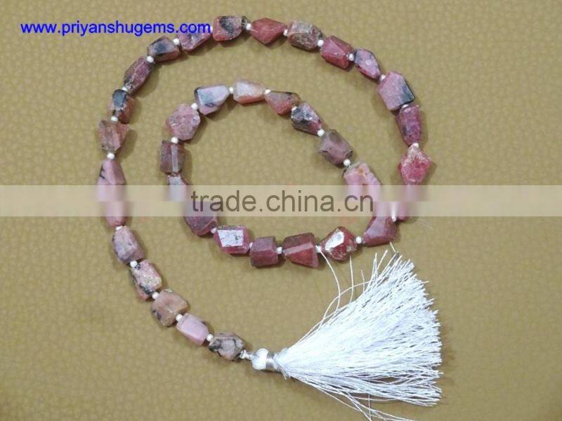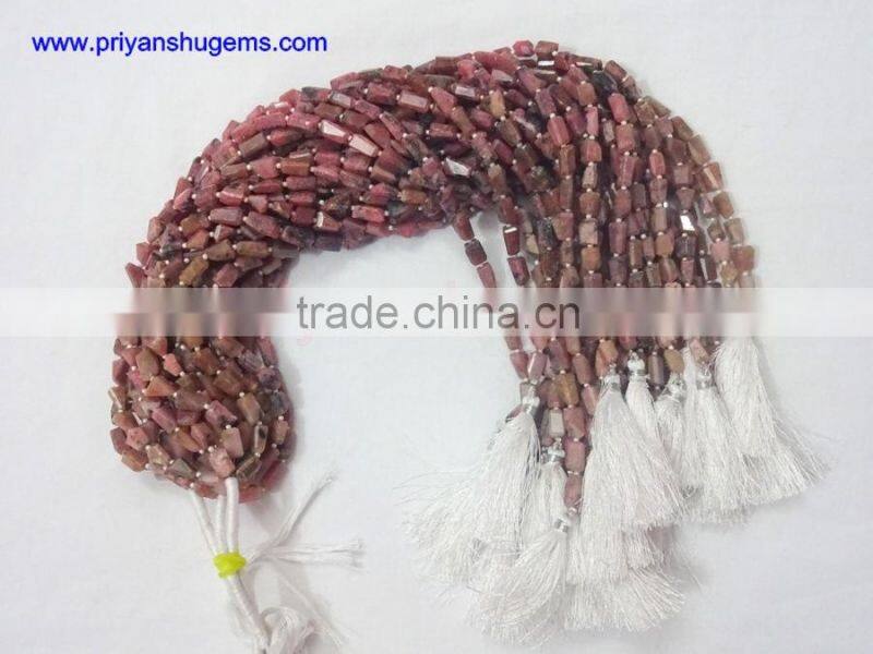 Home > Products > Step Cut Faceted Nuggets > Rhodonite Hand Made 6*10-8*12 mm Faceted Tumble Shape, 16" Strand Length 100% Natural Gemstones