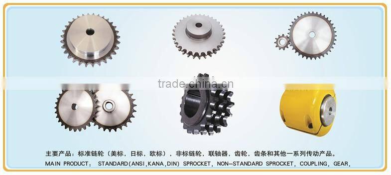 We produce the simplex sprocket, duplex sprocket and triplex sprocket. And the surface theatment include black coating, zinc plating(yellow colour and white colour).