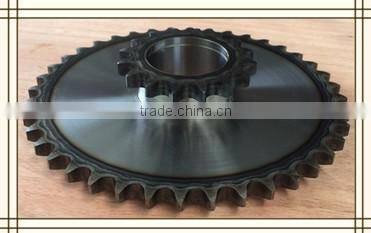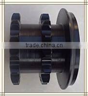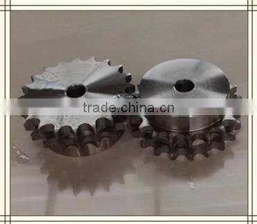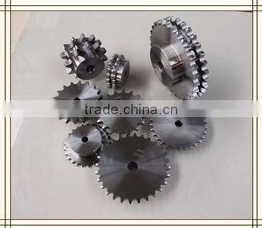 We not only produce the normal sprocket, but also can produce the special sprocket. such as the duplex sprocket, triplex sprocket, with keyway, screw , finished bore and other requirement. or such as the picture.