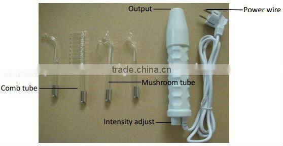 (2).Please ask the client to hold the glass tube after touch some talcum powder. Turn on the machine and the electricity will get through from hands to the whole body.