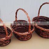 3pcs Big Strong Oval Willow Wicker Baskets for Flower With High Handle