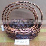 Cheap Brown 3 Pcs Round Willow Wicker Baskets for Flower With Handle