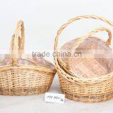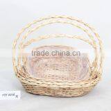 3pcs Natural Color Oval Eco-friendly Flower Basket in Wickers With Lining and Handle