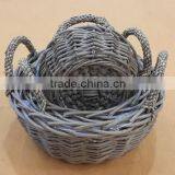 Beautiful Hottest Grey Set of 3 Pcs Round Willow Wicker Basket Pot With Ear in Europe