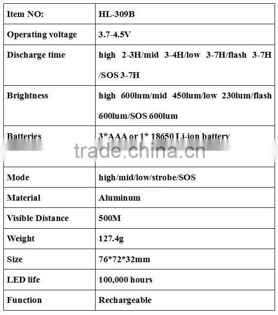 You can change the function to 5 modes: high/mid/low/strobe/SOS . It is rechargeable.