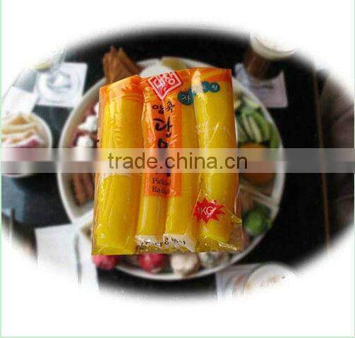 Specifications 1)ingredient: fresh radish, salt, water, acid, ect.2 )packing:1kg*10/ctn 500g*10/ctn