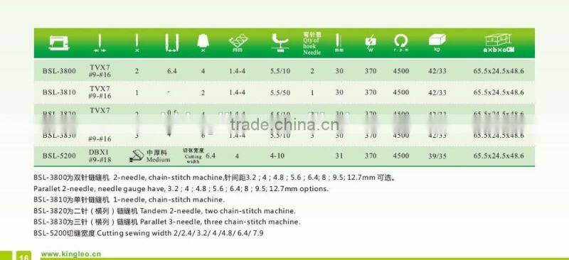 BSL-3800 can obtain two lines of parslled of double chainstitch seams simultaneously .it is suitable for jeans side seam, bedding, decoration of thin material bag, joint of shirts sleeves, trousers.