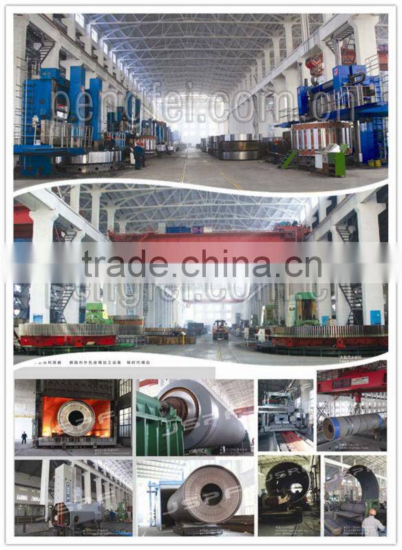 Meanwhile Pengfei Group continuously updating the processing equipments now we have 12pcs φ12m,φ10m,φ9m,φ5m,φ3.2m vertical lathes, 12pcs φ7.3×20m,φ6.2×18m,φ5×15m floor lathes, 8pcs φ12m,φ10m,φ8m,φ5m hobbing machine, 56pcs different cranes with capacity of 400t,200t, 150t,100t,75t, φ6.5m annealing furnace, 400tlarge-sized crane inside of workshop and standard. Implements multi-ways combination of production-learning-researching, establish open & stable cooperation with colleagues & institutes, assimilate international advanced scientific achievements, form our own technical advantages, gradually expand & rich Pengfei researching & developing center.