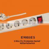 5-way/2 Pin Extension Socket/EU Standard/Ground/switch