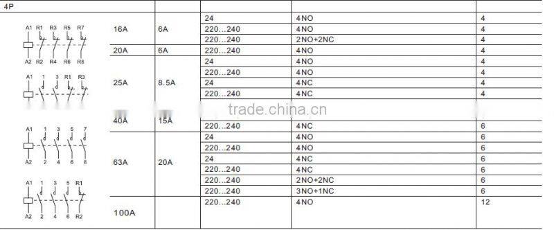 1.Current:16A,20A,25A,32A,40A,63A,100A