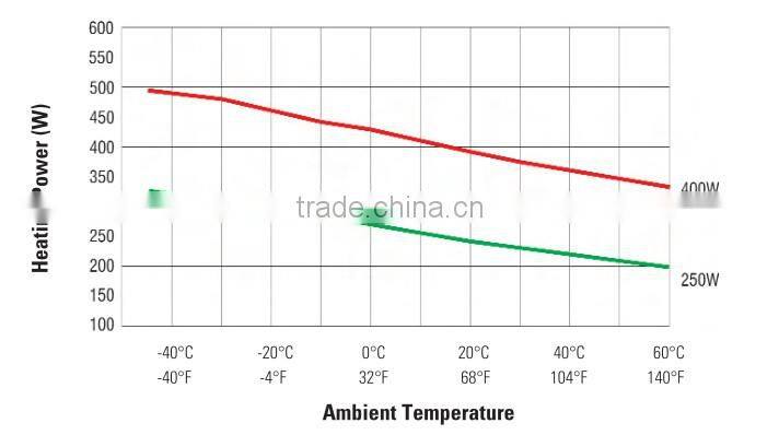 150W/250W: max. 50°C (122°F), except upper protective grille |