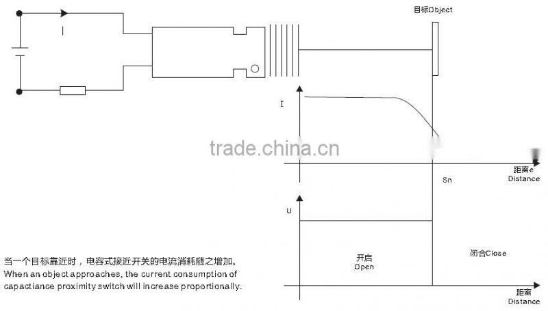 electrode, the capacitor capacity will increase, and the oscillator will vibrate. Through the treatment of behind stage circuit, both signals of stop oscillation and oscillation will be converted to switch signs for checking the existence of object. this distance can be obtained, but to nonmetal object, the action distance is d etermined by material dielectric constant, the more dielectric constant, the more action distance will be obtained.