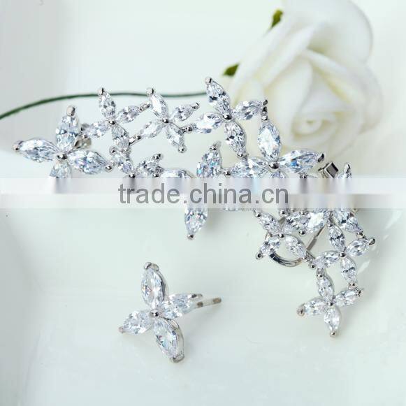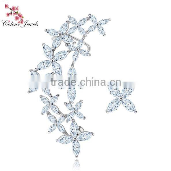 Fine Jewelry White Gold Plated Romantic Elegant Geometric Asymmetry CZ Crystal Flower Stud Earrings