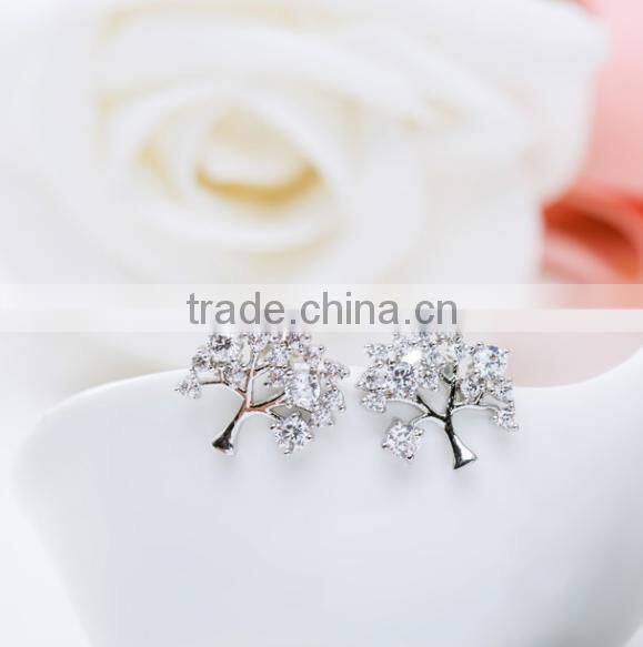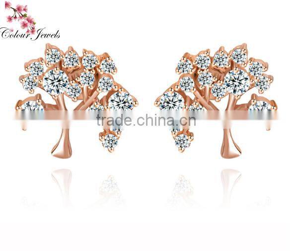 AAA cubic zirconia Tree Cut 18k Rose Gold Plated and white gold plated Cute Earrings for Girls Small Stud Earrings