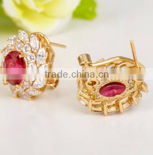 18K Champagne Gold Plated Colourful AAA Cubic Zircon Women Earrings Studs Design Women Luxury Bridal Wedding Earrings
