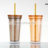 FDA Approved Promotion Plastic Double Wall Freezer Tumbler With Straw and Lid,ice Mug,frosty Cup