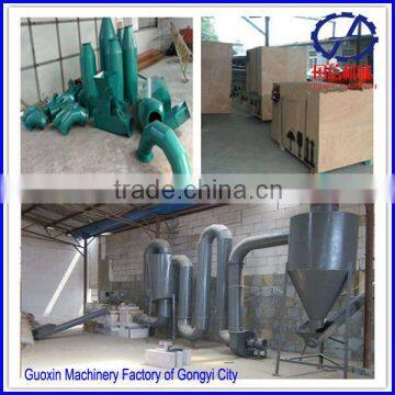 1) First, the wet materials are put into the hopper. Then the fuel boiler generates hot air which mixes with wet materials and then is sucked into the pipes by the exhausted blower (draft fan) quickly.