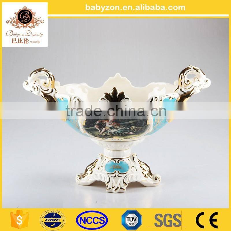 2016 Popular Home Decorate Luxury Art and Crafts Ivory 22"big Ceramic Porcelain Bowl Vase With Gold