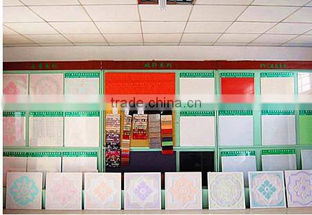 We are shandong huamei building mateial co ltd, we have high quality fiberg gypsum board with 2 decades, with enviromental natural material appied into production. Raw plaster powder, glass fiber, foular water and so on. Our daily our put is 20K pieces of tiles, and takes a week to dry. With hig htechnology equipment applied, we can design any patterns as you required.