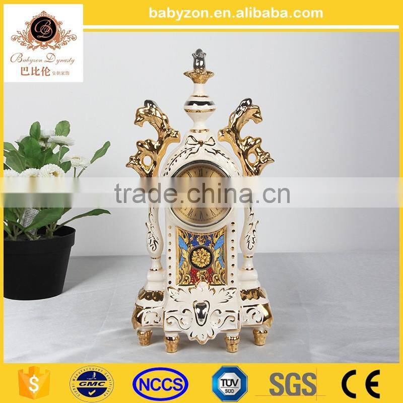 2016 OEM Charming Anyique Ingenious Luxury Ivory 16"ceramic Art Quartz Clock With Gold