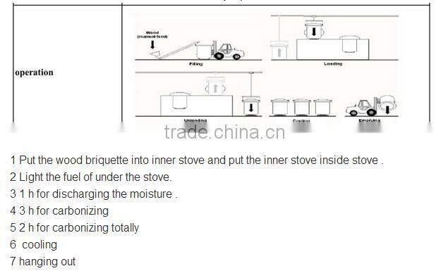 One set wood charcoal carbonization stove include:one set outer stove with three inner stove,three caps,three pieces temperature detectors,connection pipes,one set 3 tons hoisting equipment etc.