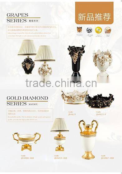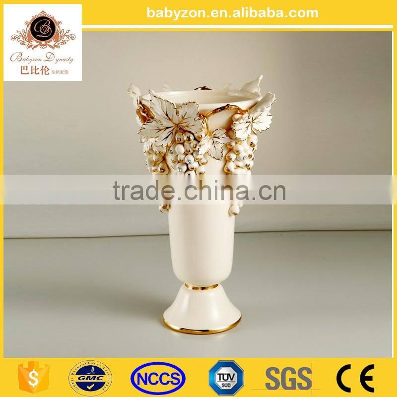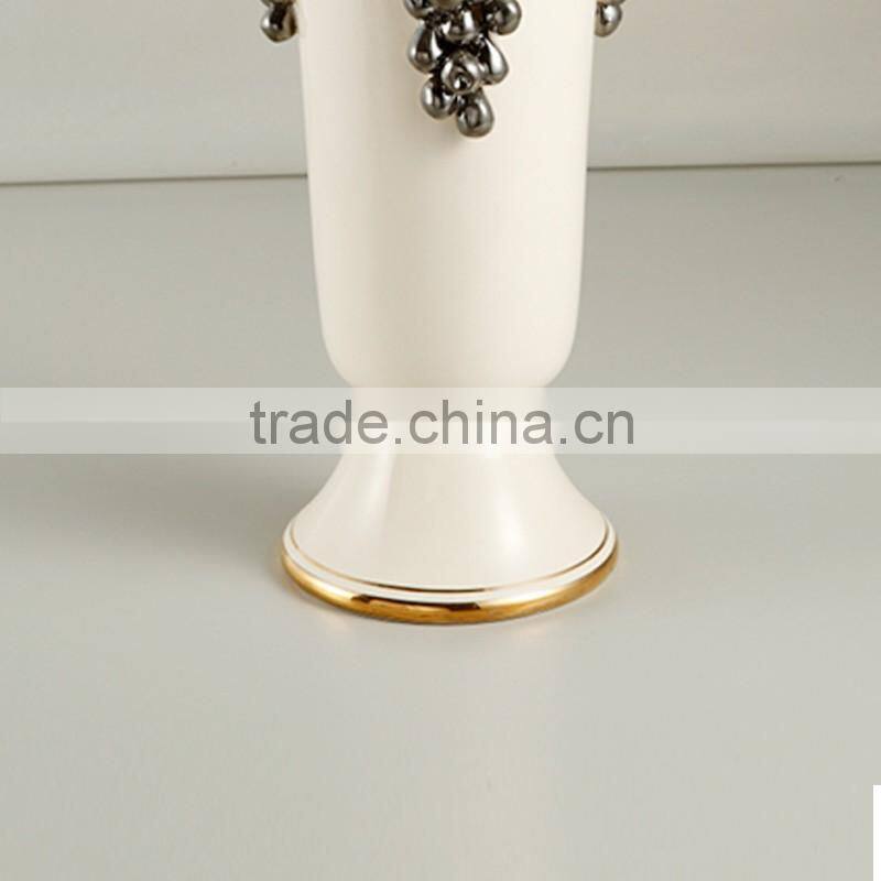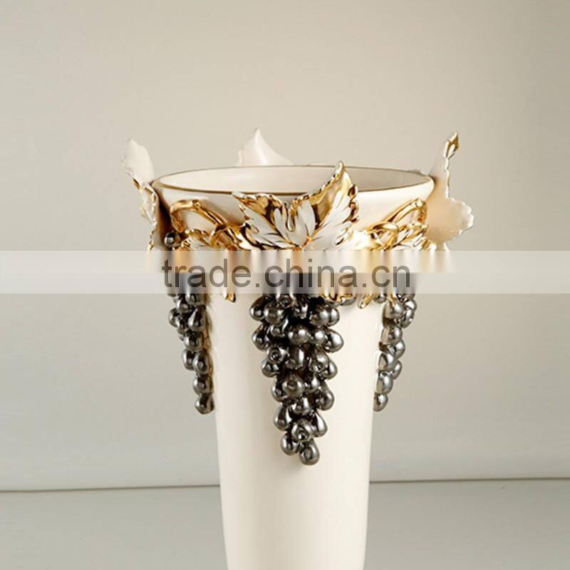 Grape Carved White and Gold Color Diamond Shape Shiny Decorative Flower Ceramic Vase