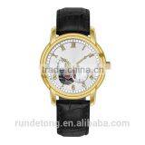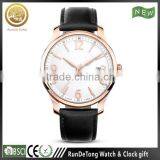 IP Plating Shiny Zinc Alloy Case Leather Strap Watch Automatic