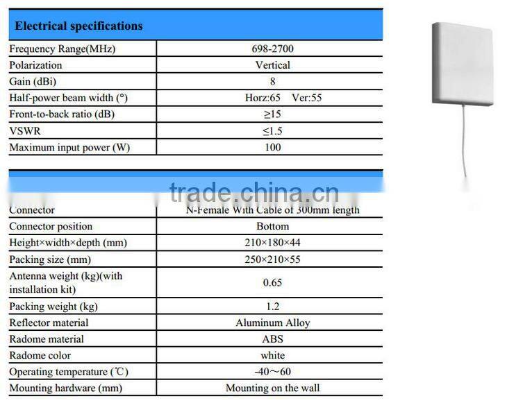 Wide Frequency Range 698-2700MHz 8dBi Wireless Omni Directional Flat Wall Mount Patch Antenna