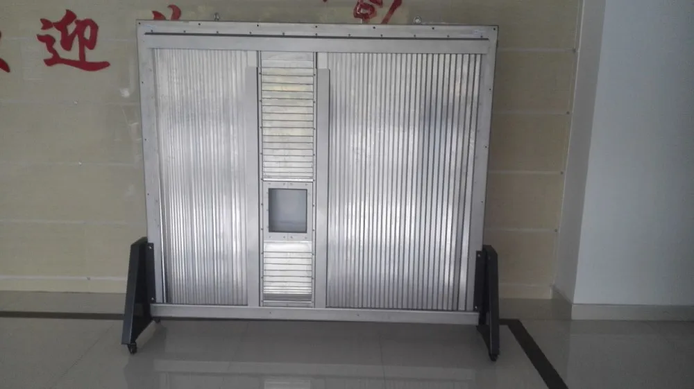 axis: Stainless steel shade, Multiple roll up covers or protective sliding plates cover the two main axis, while a ram