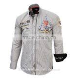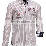 Stylish Wholesale Striped Blue Button Down Long Sleeve Pure Cotton Satin Embroidered Shirts for Men