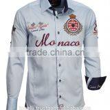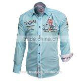 High Quality Wholesale Long Sleeve Satin Pure Cotton Light Blue Nautical Shirts for Men