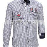 Awesome Wholesale Plaid Blue Button Down Long Sleeve Pure Cotton Satin Embroidered Shirts for Men
