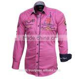 Stylish Wholesale Long Sleeve Light Pink Satin Pure Cotton Slim Fit Nautical Shirts for Men