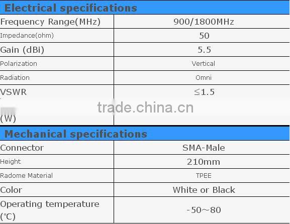 5.5dBi 900/1800 Mhz Internal Gsm Booster Antenna With Sma Connector for GSM GPRS WiFi