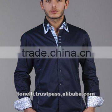 Home > Apparel & Accessories > Shirt & Blouse > Men's Long Sleeve Shirt > Mens Navy Blue Triple Collar Dress Shirt
