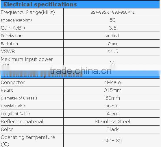 Outdoor/Indoor 2400-2483 MHz/2.4GHz 12dB Omnidirectional Fiberglass WIFI AntennaNegotiableMOQ: 100 Pieces