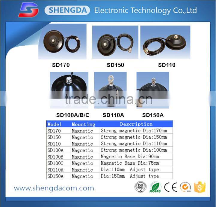Strong Magnetic Base Mount, Dia:170/175 mm, with ABS and super strong magnet for vehicle two-way radio communication, with 4M RG58U cable and PL259(UHF) connector.