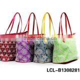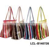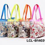 LCL-B1409291 Shining Pvc pu bi Color Customized Fashion Lady Travel Weekend Tote Hand Bag